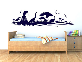 Wandtattoo Dinos vor Urzeit-Landschaft