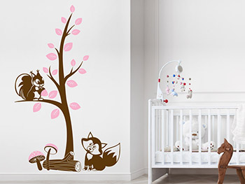 Wandtattoo Fuchs und Eichhörnchen im Wald
