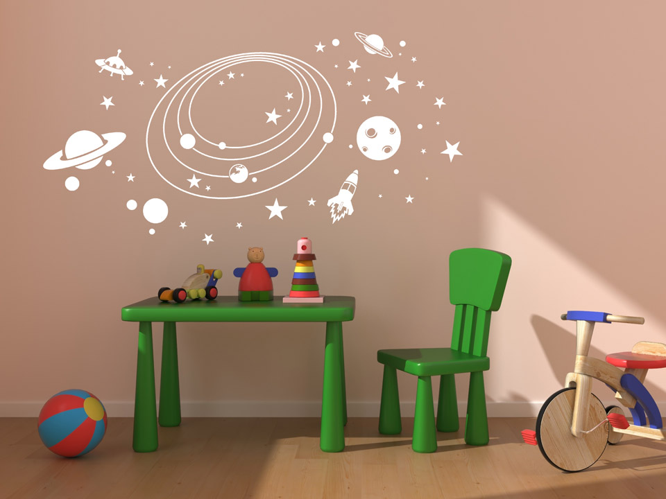 Auch als Geschenk für zukünftige Helden der Raumfahrt eignet sich dieses Wandtattoo hervorragend!