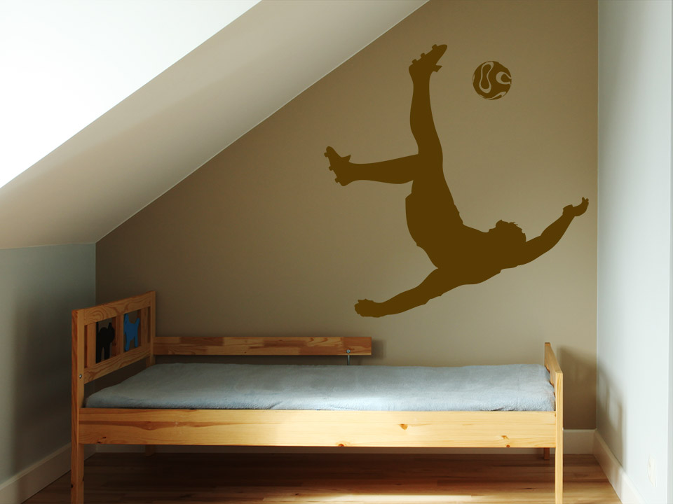 Der Wandtattoo-Fußballer macht an den Wänden von Wohnbereich und Co., aber auch im Jugendzimmer für eine sportliche Figur.