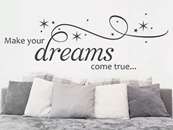 Tipp: Der Spruch im kreativen Design eignet sich zur Gestaltung des Schlafzimmers und bringt auch im Kinderzimmer oder Jugendzimmer schöne Akzente an die Wand!