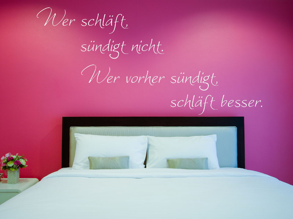 Als witzige Wanddekoration (nicht nur) für Ihr Schlafzimmer präsentiert sich der Wandtattoo Spruch Sündigen.