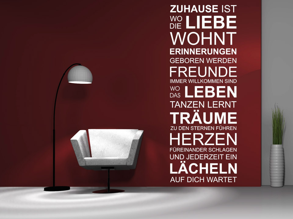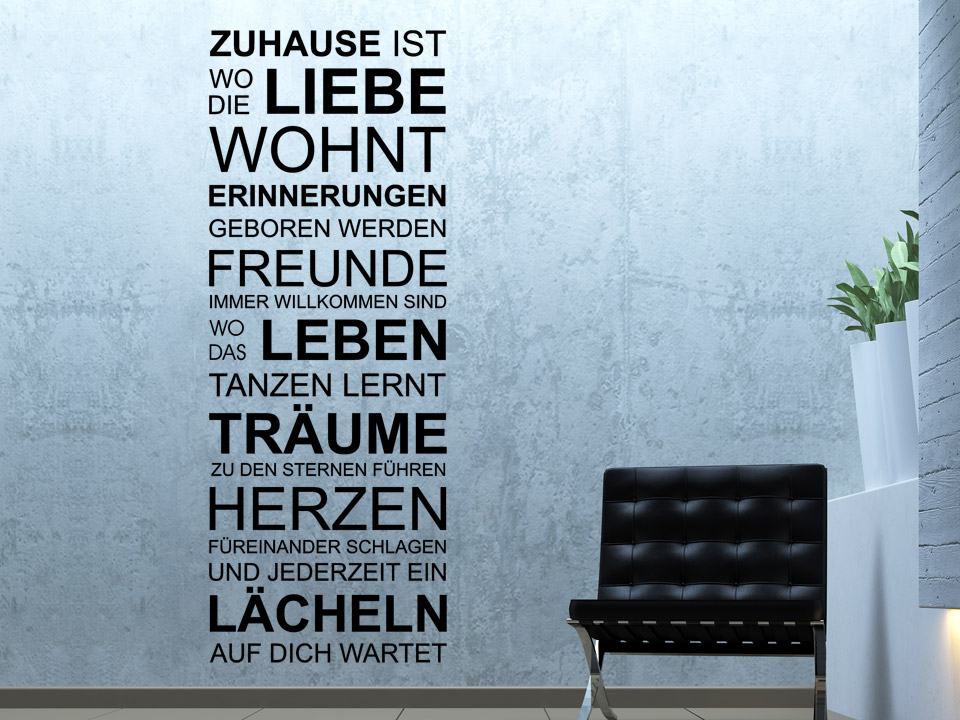 Wer seine Wände stylisch gestalten möchte, der kommt am Wandtattoo Zuhause... nicht vorbei - ein absoluter Eyecatcher mit Wohlfühlcharakter.