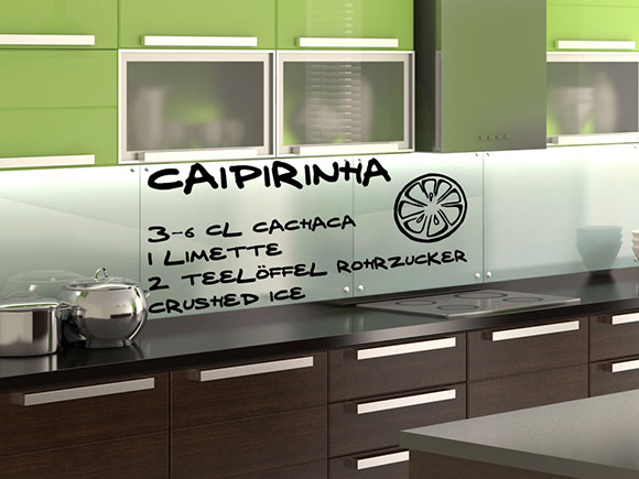 Aus wenigen Zutaten wird in diesem Fall ein toller Cocktail, wie man an unserem Wandtattoo Rezept Caipirinha unschwer erkennen kann.